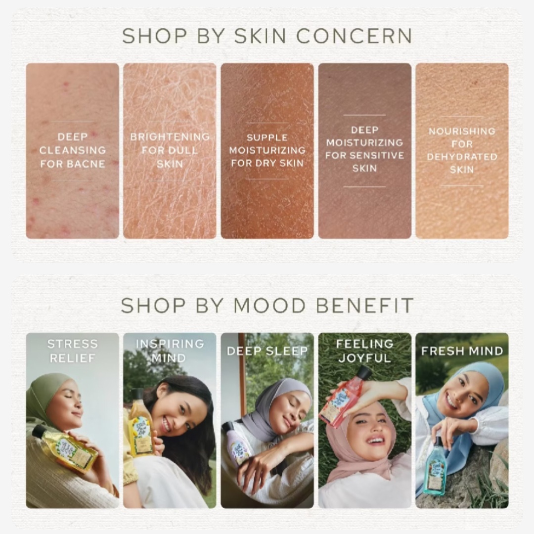 Kami menghadirkan rangkaian produk body care alami dengan perpaduan bahan terbaik dari alam β membantu melembapkan kulit, menenangkan pikiran, dan meningkatkan mood positif setiap hari.