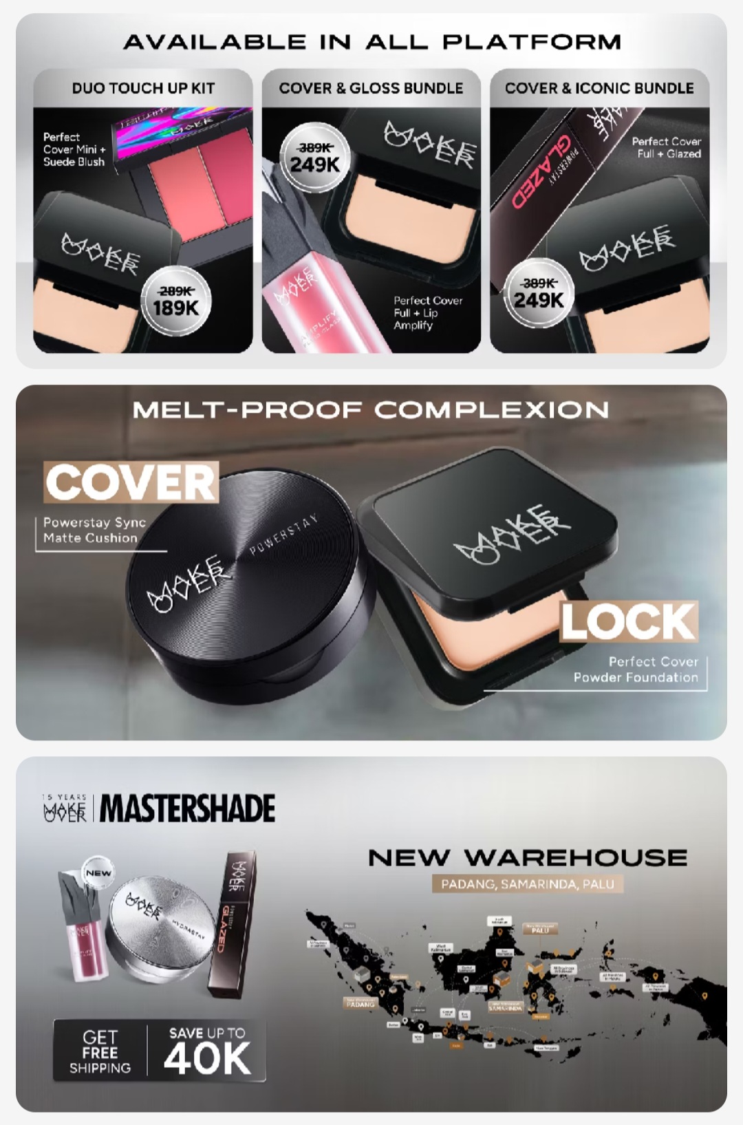 Belanja produk Make Over original hanya di toko resmi untuk jaminan keaslian, keamanan, dan hasil maksimal. Dapatkan tampilan flawless untuk aktivitas sehari-hari, acara spesial, maupun kebutuhan profesional.